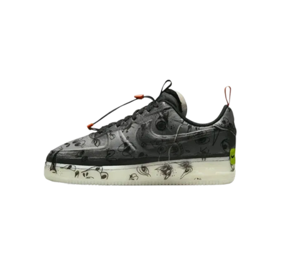The Nike Air Force 1 Low Experimental – Halloween features a vacuum-formed foam upper with a glow-in-the-dark finish. The upper features ominous black graphics reminiscent of the Nike Dunk Low – Halloween (2021). The sole itself also features a glow-in-the-dark effect, making the shoe even more spooky and spooky.