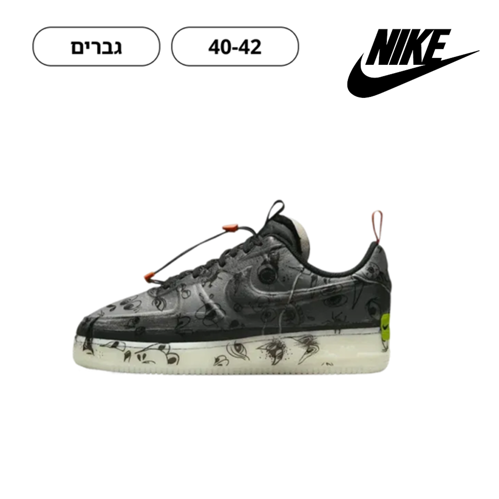 נעליים במהדורה מיוחדת בהשראת חג ההלווין, עם עיצוב ייחודי ונועז שמשלב את המראה הקלאסי של אייר פורס אחת לואו עם אלמנטים חדשניים ולא שגרתיים מתאימות לשימוש יומיומי ולמי שמחפש לוק בולט ושונה