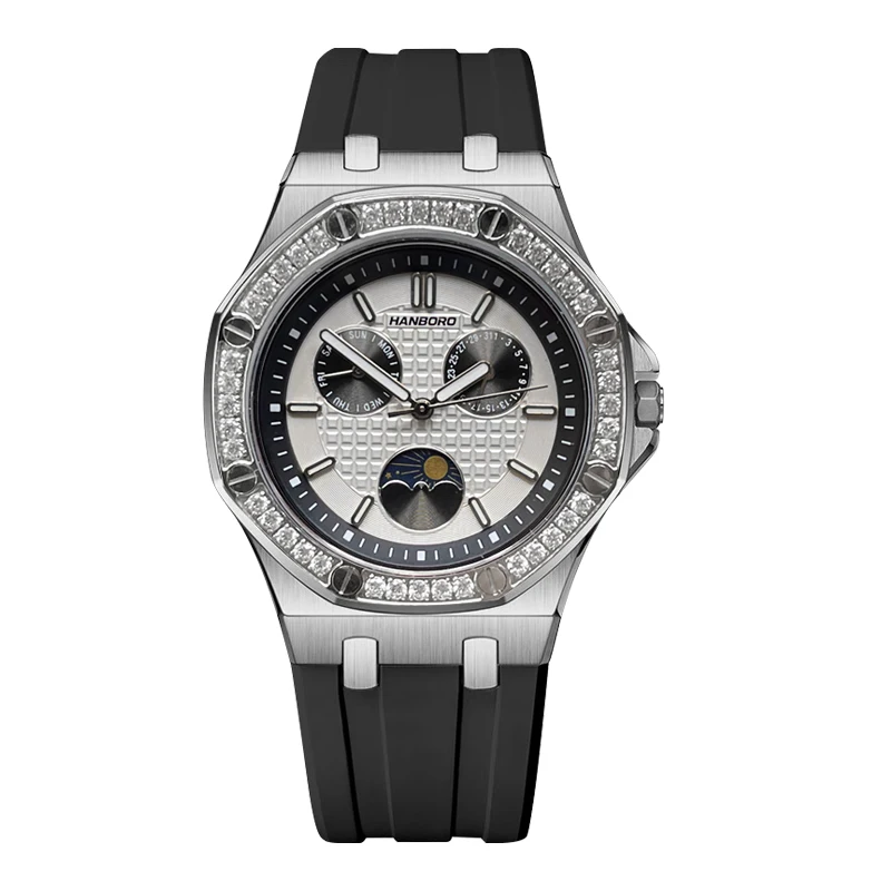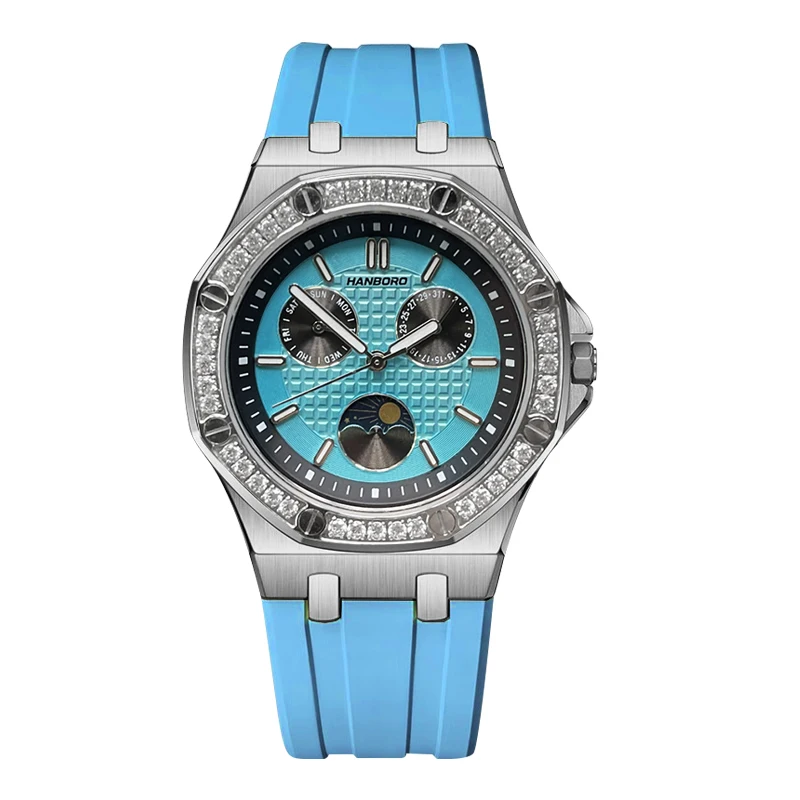שעון יד יוקרתי לנשים האנבורו – מנגנון קוורץ עם רצועת סיליקון כחולה